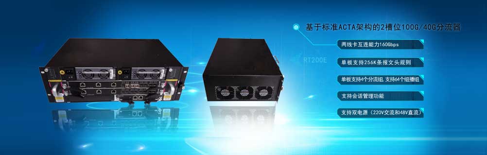 RT200設(shè)備是一款支持網(wǎng)絡(luò)行為審計(jì)系統(tǒng)、網(wǎng)絡(luò)內(nèi)容審計(jì)系統(tǒng)和入侵檢測(cè)系統(tǒng)的高速流量預(yù)處理平臺(tái)。